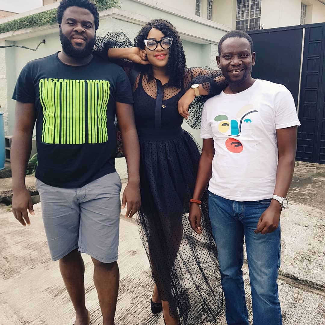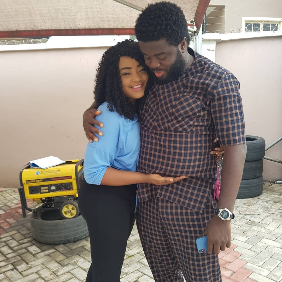The actress is on movie set and shared the photos cuddling with the cute actor. The film, Olaku, is produced by her company and directed by Afeez Owo.