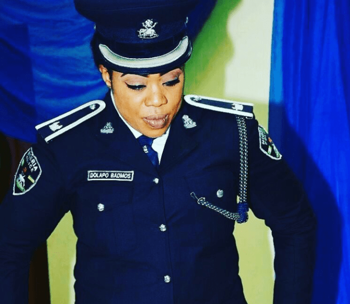 Police Public Relations Officer, Dolapo Badmus has joined the latest trend “na den dey rush us”. This she did by sharing a picture showing her rocking her uniform with a new tank.