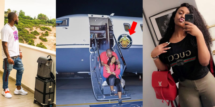 Pictured is Davido with his girlfriend, Chioma on the air stairs of his private jet. The singer revealed in a post on instagram minutes ago that this is the first time both of them are flying in his jet together.