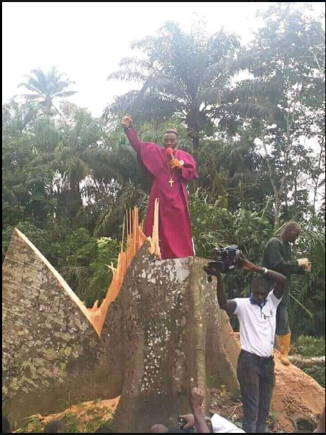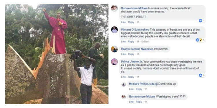A priest has sparked outrage after he cut down a very old tree in Warri, Delta allegedly because the tree was hindering people’s progress.