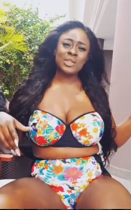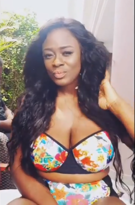Former Big Brother Naija housemate, Uriel Oputa showed off her curves in a two piece floral swimsuit.