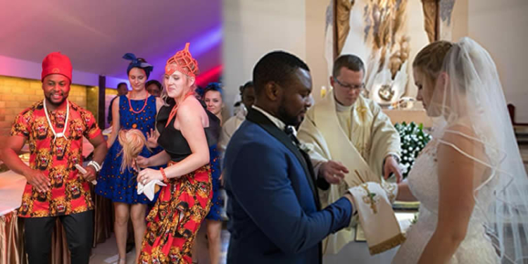 Photos have shown the moment a Nigerian man got married to his white partner in style in Europe.