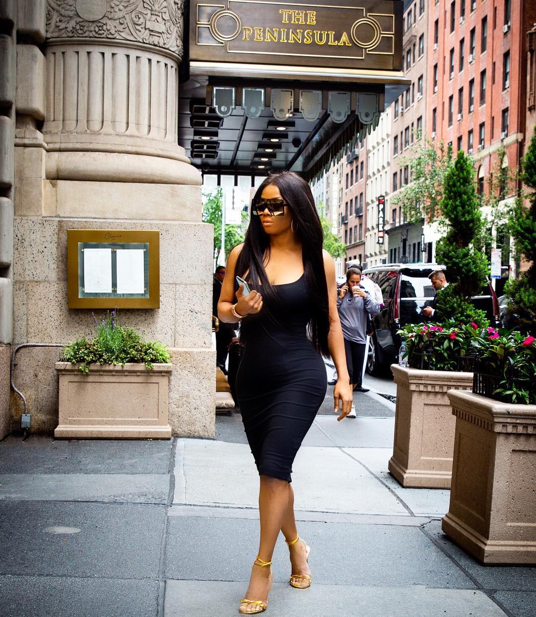 The media personality clad in a figure-hugging black dress, showed off noticeably bigger hips.
