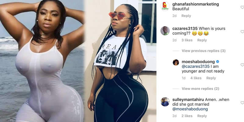 Ghanaian actress and entrepreneur, Moesha Boduong says she is not ready to get married. According to Moesha, she is younger and not ready to get married anytime soon.