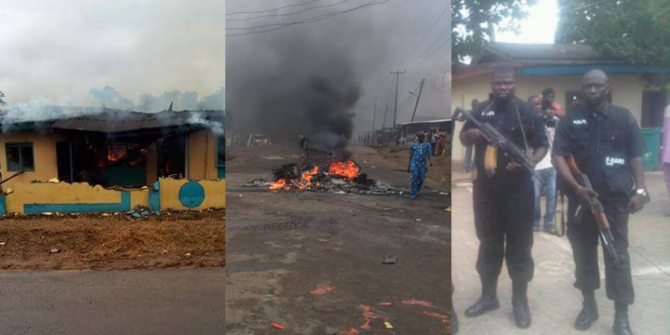 Irate youths in Iwo, Osun State, this morning, set ablaze the Iwo police area command office following the death of an undergraduate of the Osun state polytechnic, Tunde Nofiu, who was allegedly shot dead by an officer attached to the Special Anti Robbery Squad SARS during the Sallah holiday.