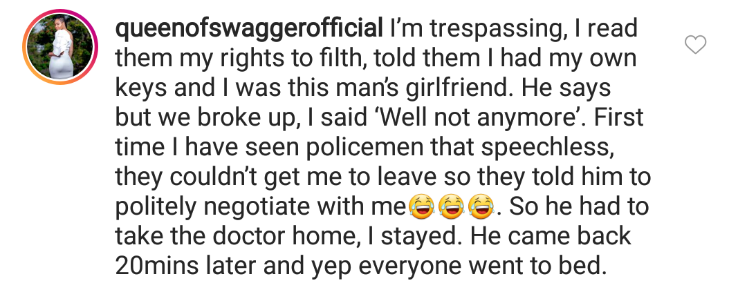 The Zimbabwean socialite and businesswoman who is now divorced for fellow contestant from Ghana, Elikem revealed how she pulled up unannounced to her then boyfriend’s house only for him to show up with another woman.