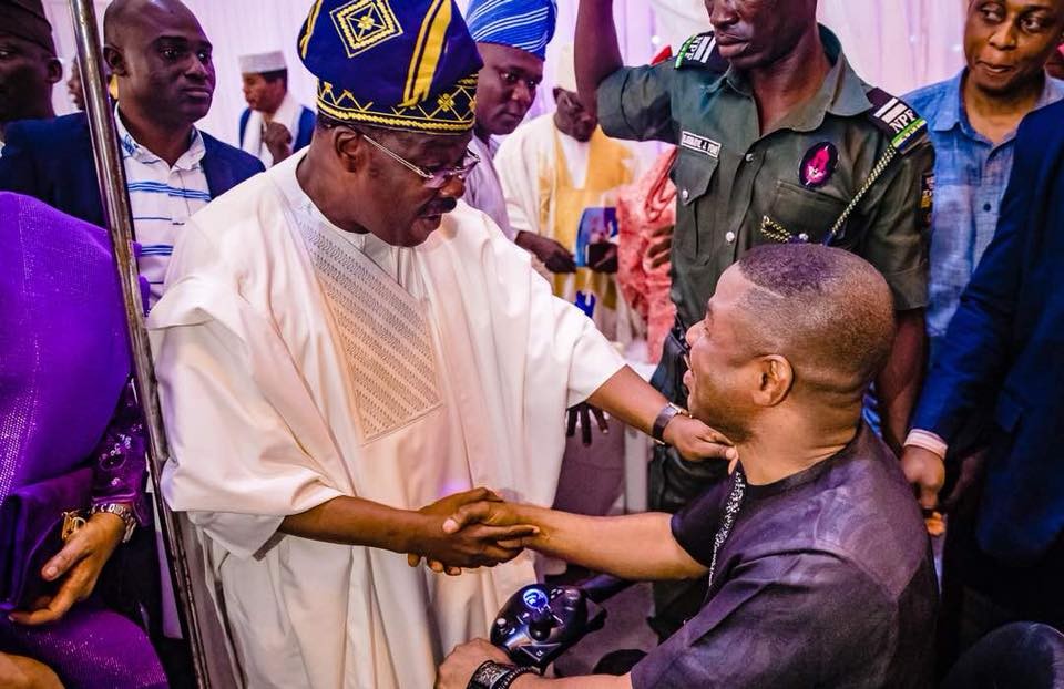 The governor and the singer were all smiles today at the Olubadan of Ibadan, Oba Saliu Adetunji’s 90th birthday party in Ibadan, the state capital.