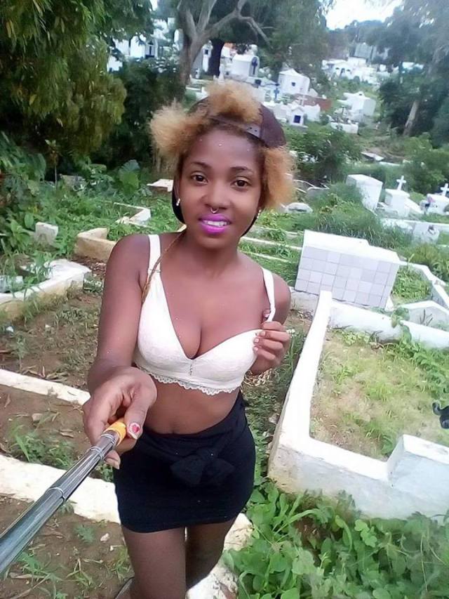 The lady who was clad in a bra and mini-skirt, chose to take a bomb-a$$ selfie in a graveyard and looked less bothered by her environment.