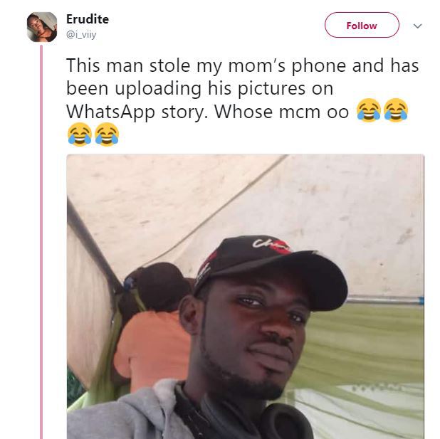 This man stole my mom’s phone and has been uploading his pictures on WhatsApp story. Whose mcm oo ????