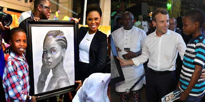Earlier in July, French President Emmanuel Macron was amazed at the unbelievable talent exhibited by Kareem Olamilekan, who painted the French President’s portrait on canvas in just 2 hours. See photo below.
