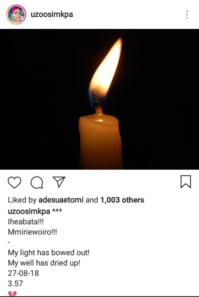 Taking to her Instagram story, Uzo mourned her father who passed away yesterday afternoon.