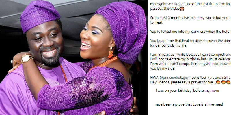 Mercy Johnson and her husband Odi Okojie are celebrating their 7th wedding anniversary and the actress did so by sharing a heartwarming message appreciating her husband.