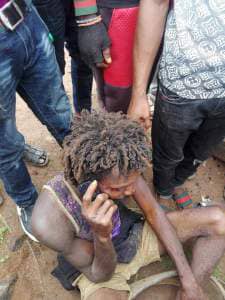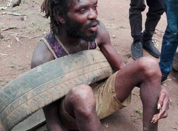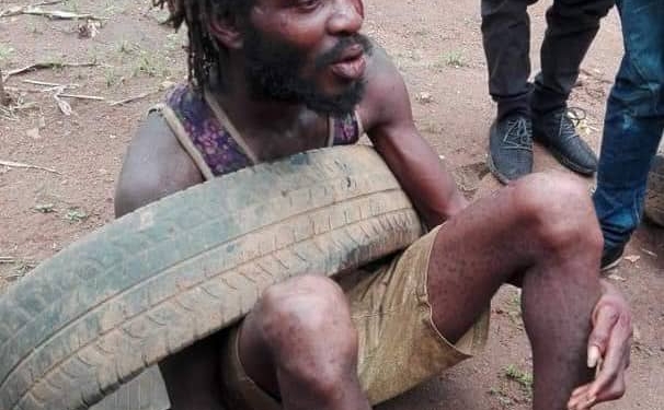 “This guy was caught around Orita-Obele estate along roadblock Akure, Ondo state. He was caught by some good Nigerians who have been on his trail for about two weeks after suspecting he’s a kidnapper and only pretending to be a mad man. He was caught with two phones.