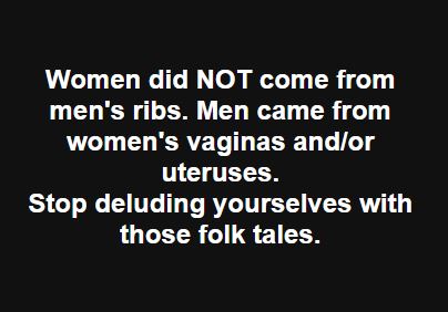 According to her, women didn’t come out of men’s ribs. The reverse is the case and men are the ones that came out of women’s vaginas.