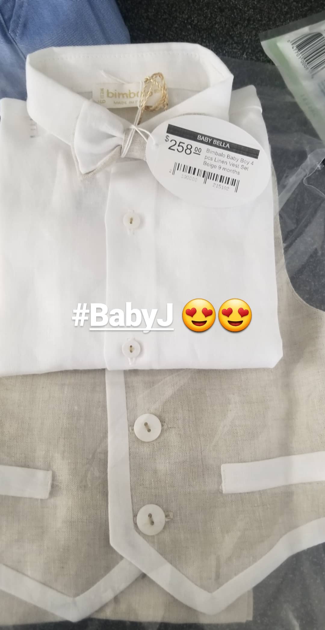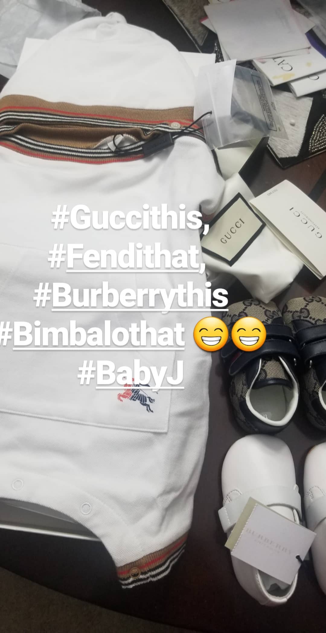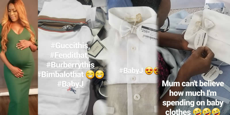 Taking to her Instagram story, she also shared photos of some of the designer clothes she’s already buying for her baby boy, to the surprise of her mum who can’t believe the extravagant cost of them.