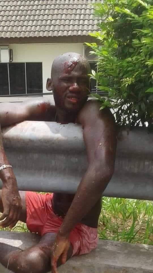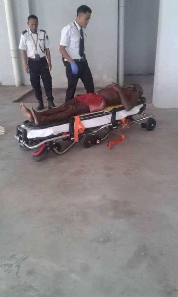 “This our brother jumped from upstairs in suria malaysia to escape the cops. He’s been taken for treatment as at now…. Hope he survives”