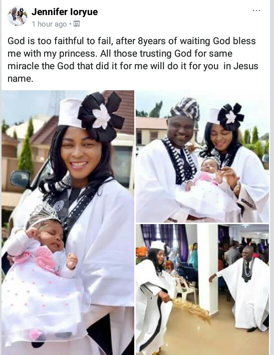 Nigerian woman, Jennifer and her husband welcomed a daughter after eight years of waiting. Congrats to them!