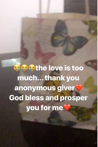 The Hair NowNow ambassador took to her instastory to flaunt the gifts and saying she is receiving too much love. She also thanked the anonymous sender whilst praying that God bless and prosper the sender for her.