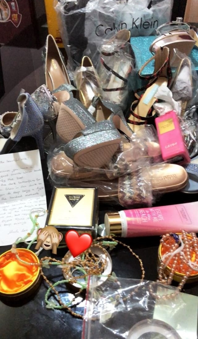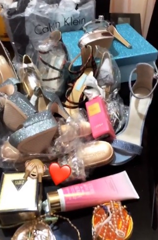 The wrapped gift which arrived through DHL private courier service, had a Note (probably from he sender, containing a reasonable explanation), bags, shoes, perfume, cream and other accessories.