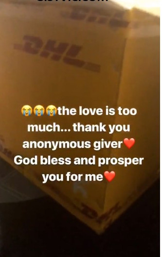 The Hair NowNow ambassador took to her instastory to flaunt the gifts and saying she is receiving too much love. She also thanked the anonymous sender whilst praying that God bless and prosper the sender for her.