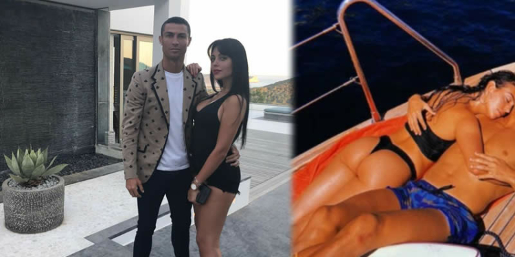 Cristiano Ronaldo‘s partner,Georgina Rodriguez shared this loved-up photo of herself with the football star relaxing on a yatch and wrote: ‘How nice to feel a warm hug when you’re cold#TeAmo @cristiano’