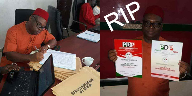 The late Hon. Egbulefu, before his sudden death on Monday, had last week picked nomination forms of the PDP in Abuja to contest for Aba North/Aba South Federal Constituency seat in the 2019 general elections.