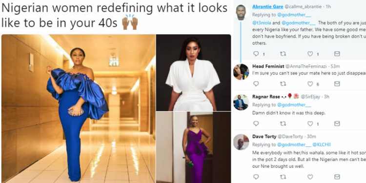 Ebuka Obi-Uchendu shared a photo of some elegant Nigerian celebrities, including Rita Dominic and Kate Henshaw and praised them for redefining what  40s look like. In reply, a female Twitter user suggested the reason they look so good could be that most of them are not married.