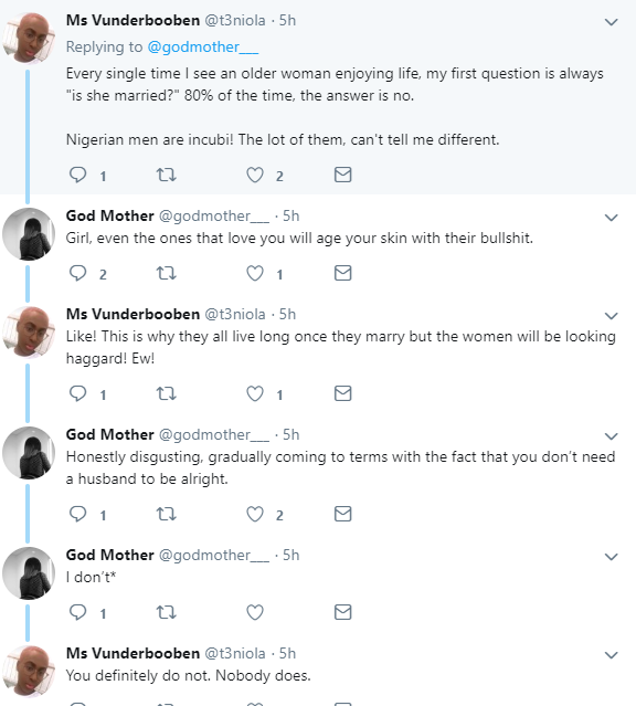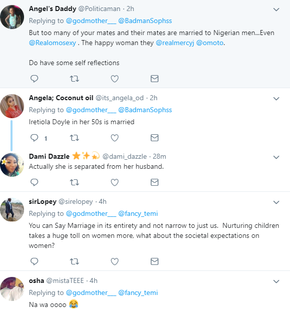 @godmother__ wrote: “Just wondering how many of them have husbands, cuz I’m telling you Nigerian men will age you with stress. If you haven’t fallen into their trap avoid them like plagues, if you have fallen plan a quiet escape.”
