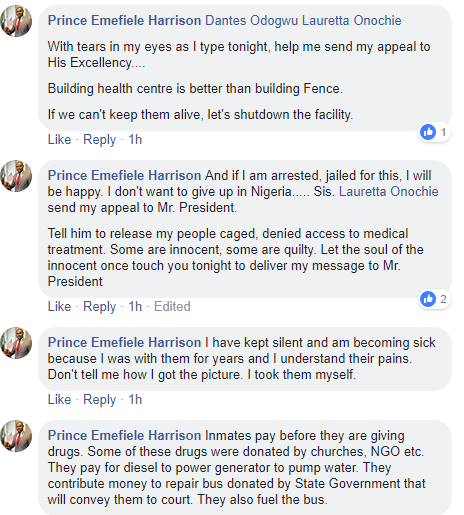 2016, I published two malnourished sicked inmates in Ogwashi Uku prison Delta State and I was assured they will be giving full medical attention. They both died two days later.