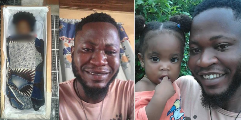 John-mary Uzochukwu, from Nnewi, Anambra state, shared a photo of himself crying and also a photo of his beautiful daughter’s corpse.