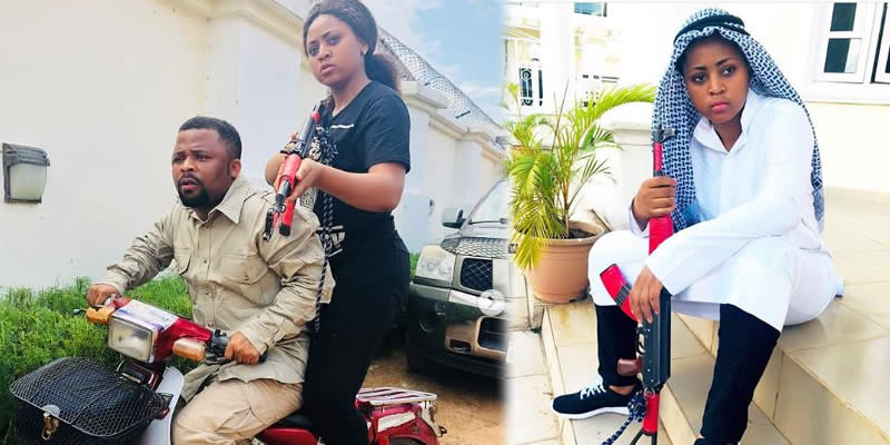 Regina Daniels is very beautiful and she knows it. The 17 year old was recently seen in a native Arab outfit as she posed with a gun.