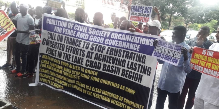 The group led by its National Coordinator, Jonathan Ogwuche during a protest rally to the French Embassy in Abuja today said third party countries are the new problem in the fight to root out the last remnants of Boko Haram fighters in Borno state and environ – the entire Lake Chad Basin bordering Nigeria.