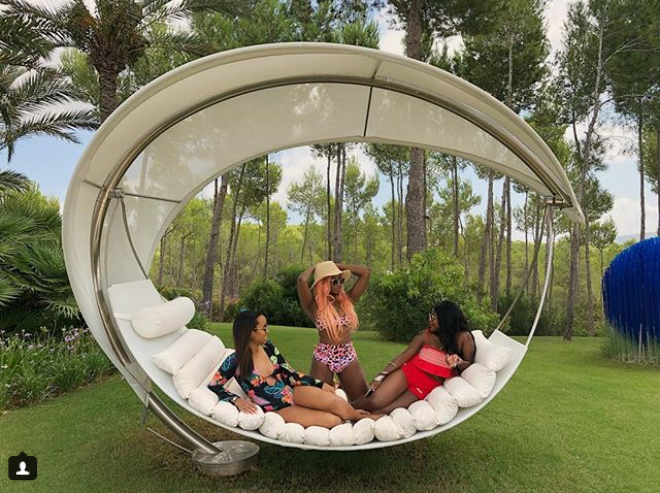 Florence Otedola a.k.a DJ Cuppy who is currently spending quality good time with her best friends in Ibiza, took to her IG page to share photos of herself rocking a two-piece bikini while posing with her pals.