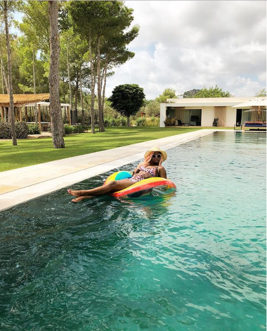 Captioning one of the photos, she wrote: ‘Every year, my best friends and I take time off work to spend quality time together in Ibiza! This year is no exception! #DayOnes.’