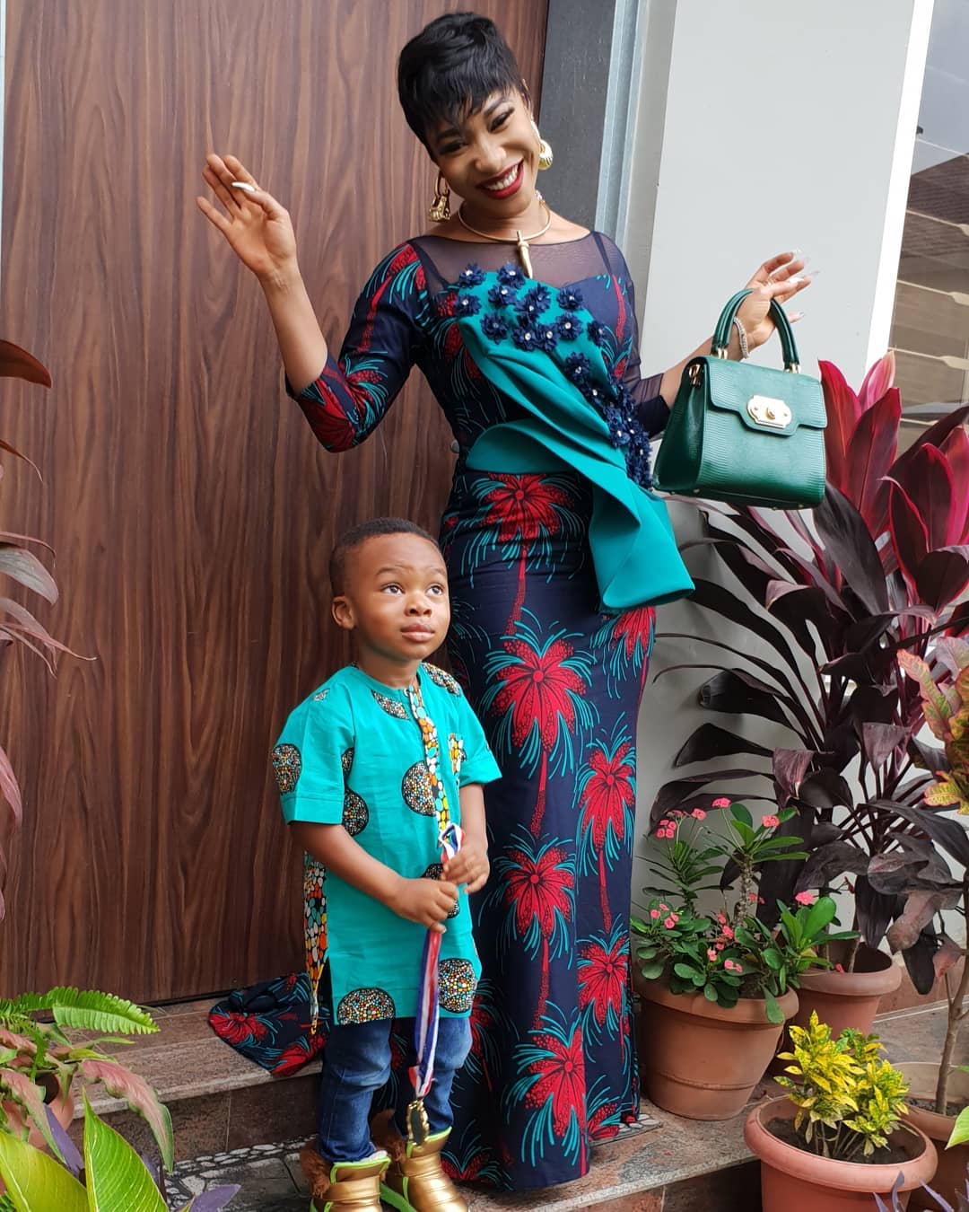 Actress Tonto Dikeh gets emotional as her little one resumes school (photo)