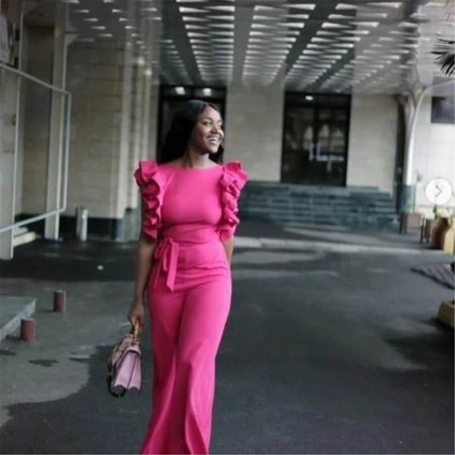 Chioma took to her Instagram page to share photos of herself looking sweet in a pink jumpsuit.