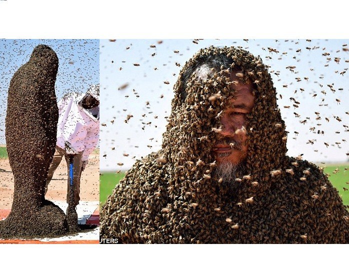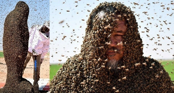 Man tries to cover himself with 20,000 bees in his second attempt to make it into the Guinness Book of Records (Graphic Photos)