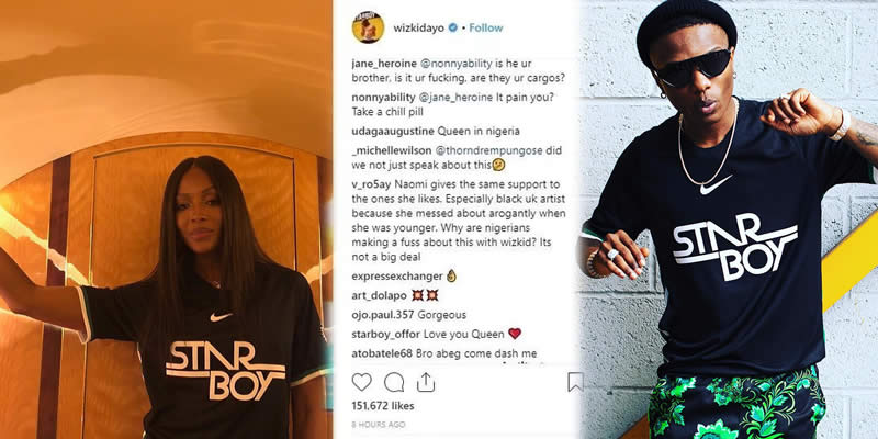 One of these people who donned on the Starboy T-shirt was Naomi. And it is to this fashion diva that Wizkid decided to direct his thanks and appreciation.