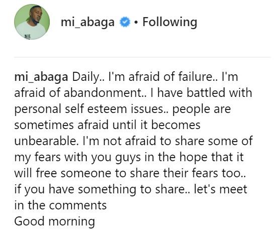 ‘I’m afraid of failure, I have battled with personal self esteem issues’ – MI Abaga