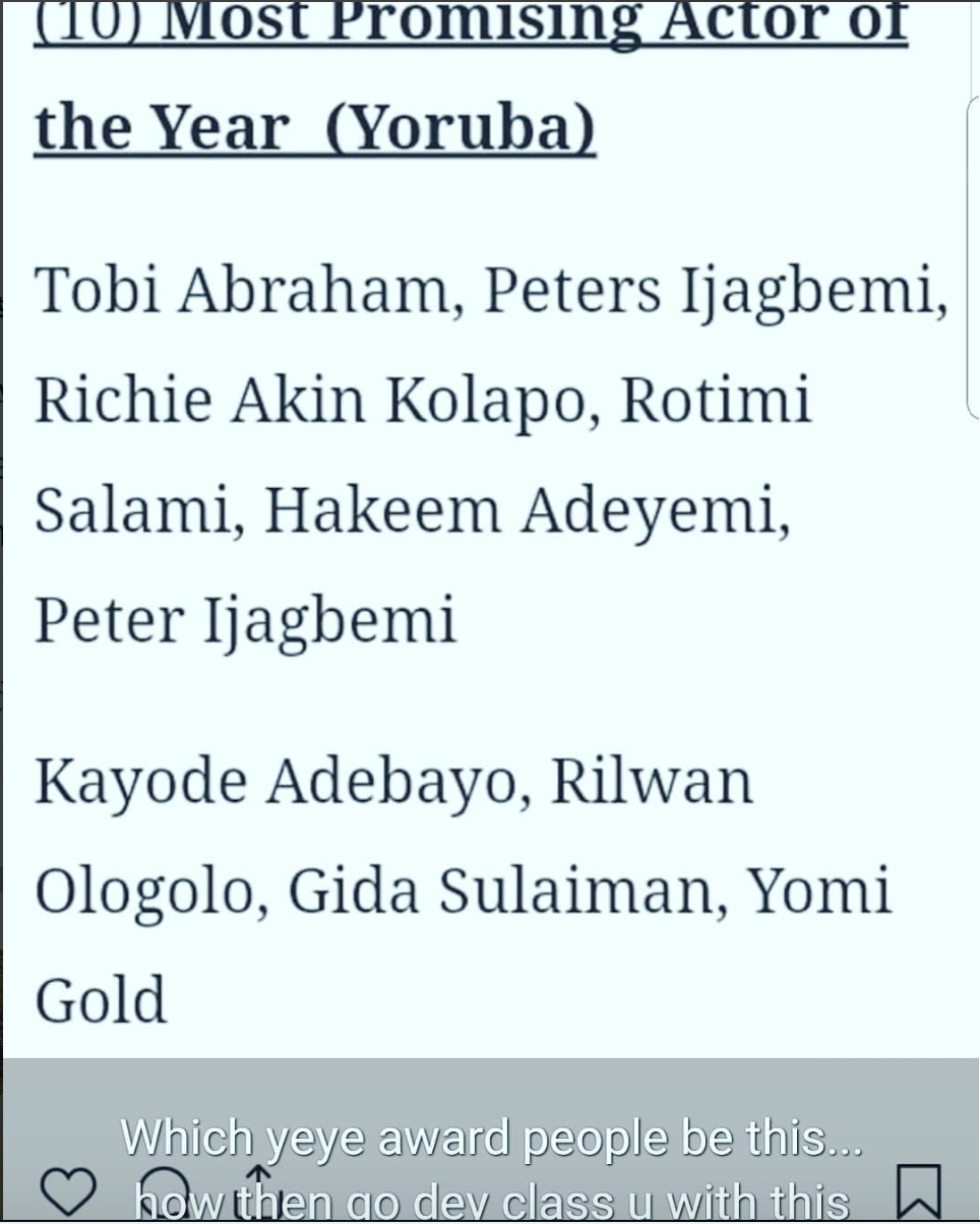 Nollywood actor of the Yoruba genre, Yomi Gold, has called out the publishers of City People magazine for nominating him in the category of the Most Promising Actor of the year in the 2018 edition of the Awards.