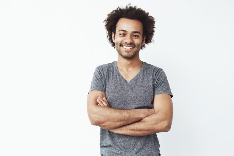 Everyone knows that smiling gives off positive vibes and shows people you’re open to conversation. But not just any smile will do; in fact, a disingenuous one could wind up backfiring. “Honest emotions are bilateral,” says Garrison. “That means they show up on both sides of the face. So make sure if you are going to smile, that it is a full and genuine smile. A smile on one side of the face is unconsciously interpreted as contempt, so a quick grin or an attempted polite one-sided smile is not a good idea.”