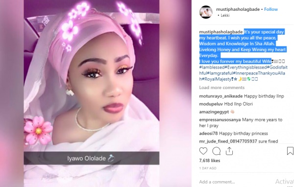 Mustapha Sholagbade’s babymama, has taken a jab at Yoruba Actor’s wife after the entertainer took to his IG page to wish her a happy birthday.