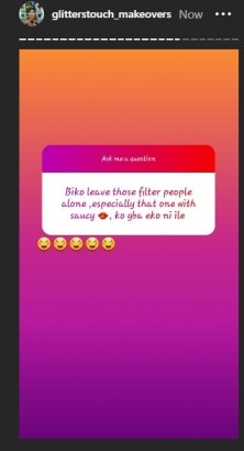 However reacting to the post, Mustapha Sholagbade’s babymama shared a lovely photo of herself with no makeup and filter, and also wrote;