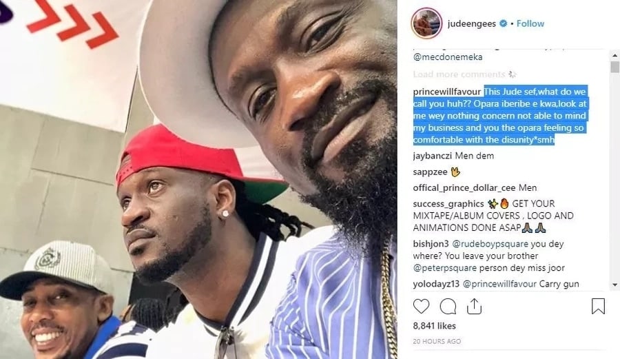 This came after Paul Okoye, the other of the twin group, posted a photo displaying himself, Jude Okoye and another person who was supposedly a friend.