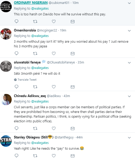 Davido is a serving corps member and should abide by the rules and regulations of the scheme but there is one rule he is flouting and it has led to a debate on Twitter after comedian Wale Gates pointed it out.