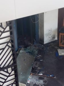 When NAN visited the bank, broken doors and windows of the bank appeared to have been blown off with dynamite, while blood stains were still visible.