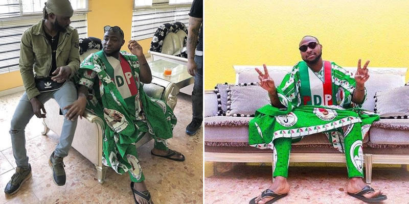 Singer Davido rocking customized PDP Agbada