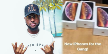 The singer who tagged himself O.B.O, (Omo Baba Olowo which means child of a rich man), reminded everyone just how rich he is. Davido surprised his crew members with the latest iPhones as gifts.