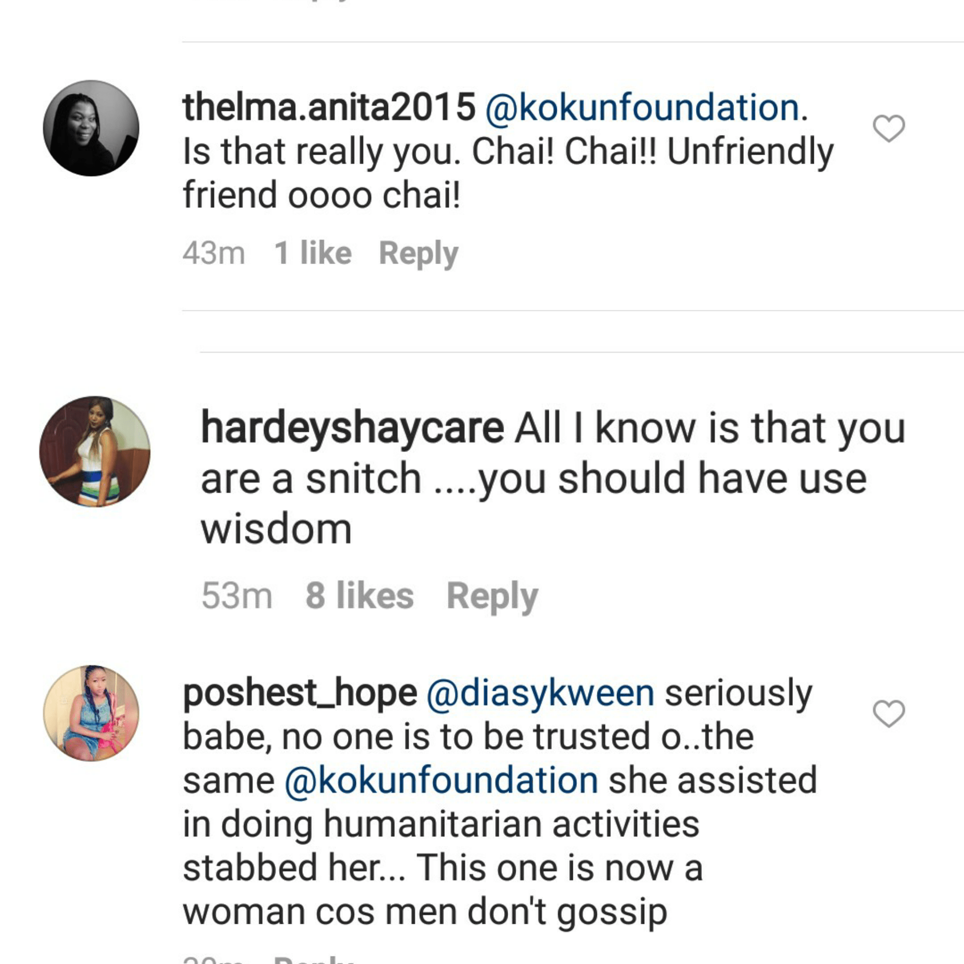 A number of people believed Kokun could have tried to talk to Tonto about her unhealthy hatred rather than snitch on her despite their closeness and friendship!