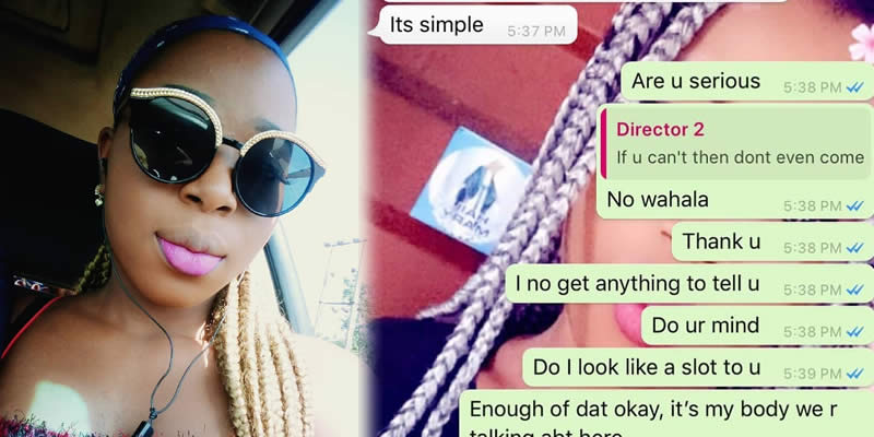 Stella took to her Instagram page to share screenshots of the alleged messages the married movie director sent to her in which he told her that he can only work with her if she agrees to ”spent some time” with him alone.